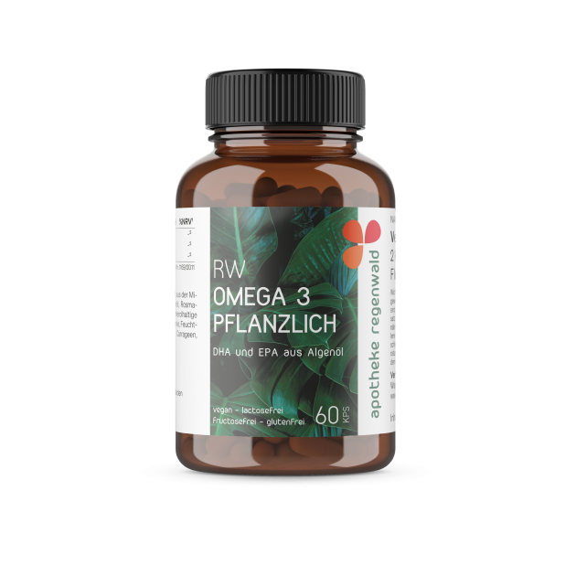 Omega-3-Fettsäuren wie Eicosapentaensäure (EPA) und Docosahexaensäure (DHA) sind wichtige Nährstoffe für die Gesundheit unseres Gehirns und der Nervenzellen. Sie leisten einen Beitrag zur Aufrechterhaltung eines normalen Blutdrucks sowie zur Regulation der Blutfettwerte und fördern die Herz-Kreislauf-Gesundheit. Das vegane Omega-3-Öl wird aus Mikroalgen gewonnen und weist dieselben positiven Eigenschaften wie Fischöl auf. Bei der Gewinnung des pflanzlichen DHA-/EPA-Öls wird nicht in das empfindliche Ökosystem Meer eingegriffen, denn die Algen werden in speziellen Anlagen kultiviert